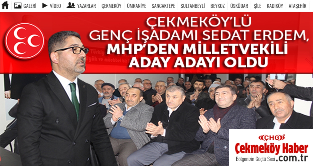 İş insanı ve gazeteci Sedat Erdem Çekmeköy Milliyetçi Hareket Partisi ilçe başkanlığında hemşehrilerinin de yoğun katılımı ile MHP'den İstanbul birinci bölge milletvekili aday adayı olacağını açıkladı.